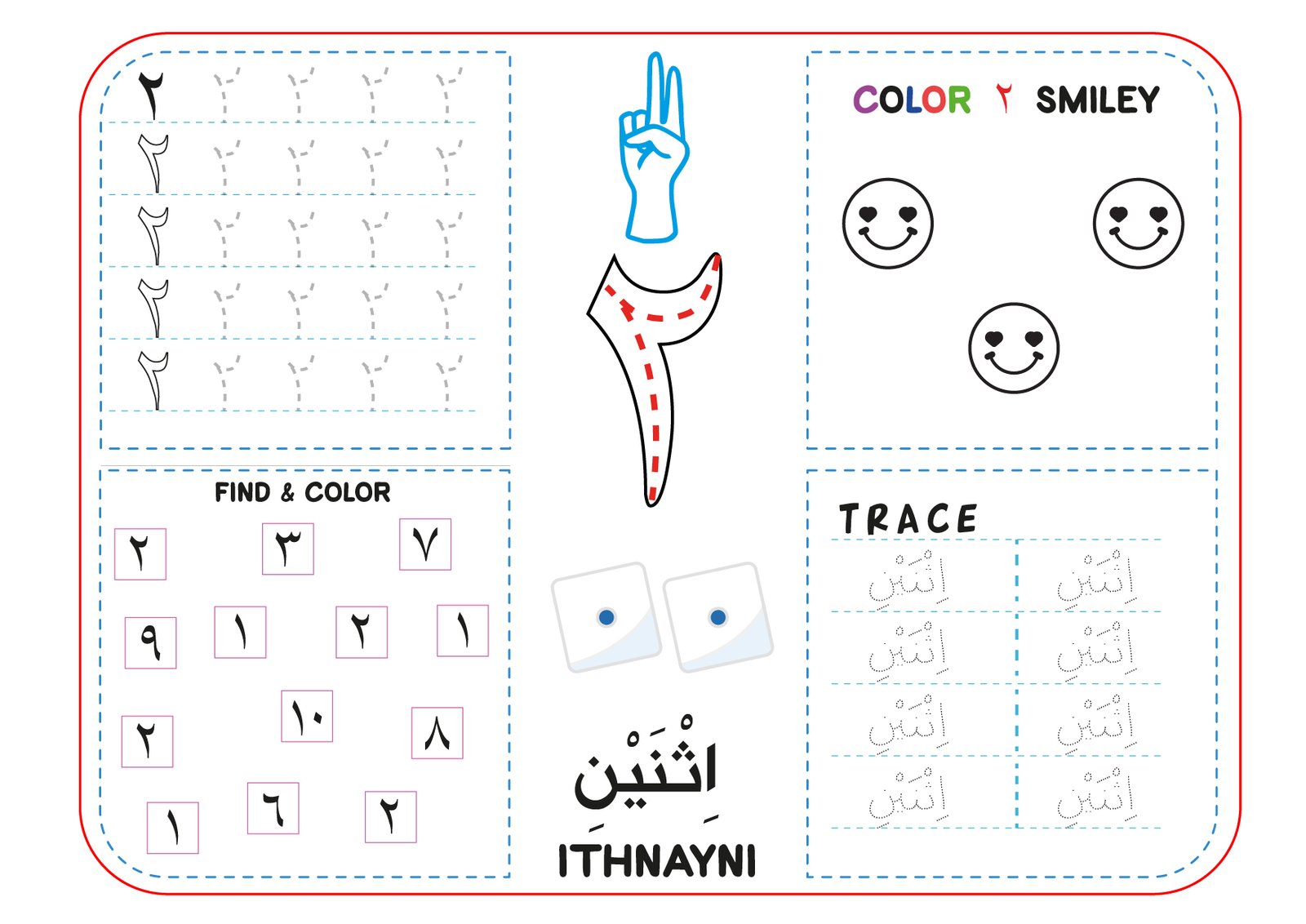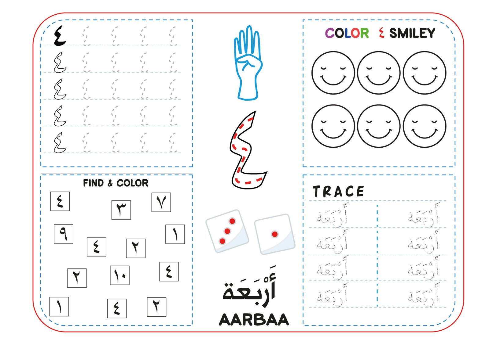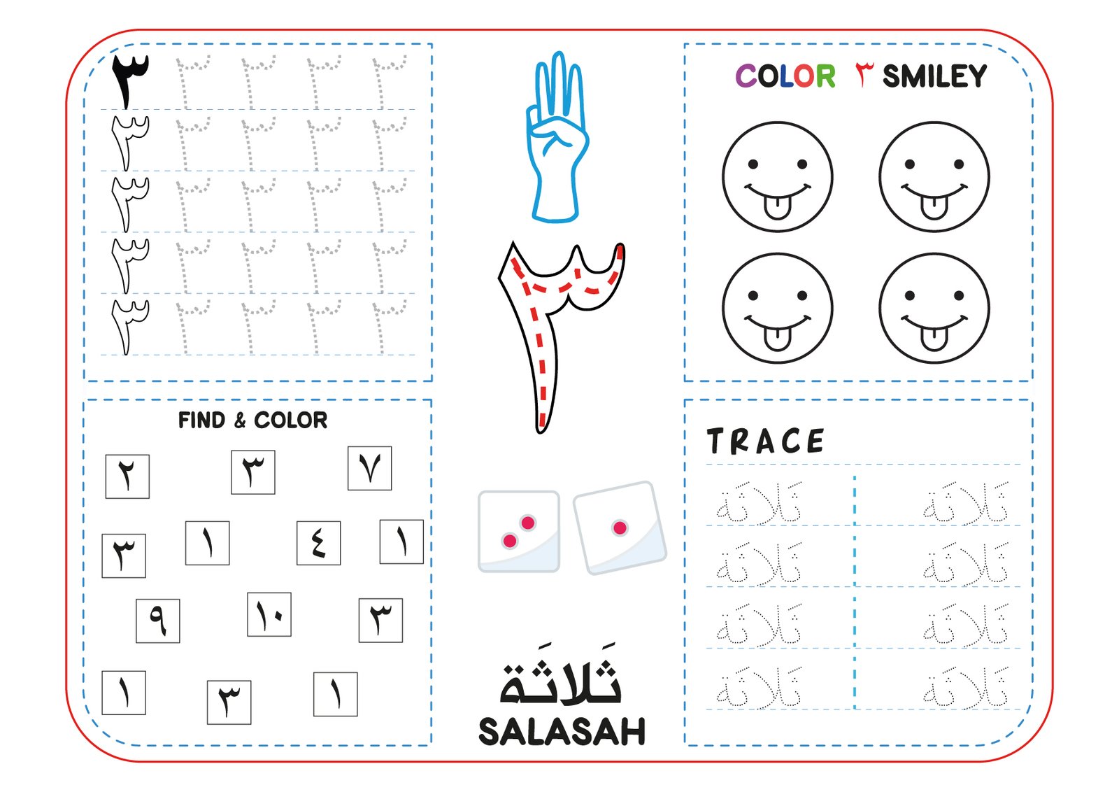 Arabic Numbers 1 to 10 Worksheet PDF – Trace, Count & Color – Ibtidaa